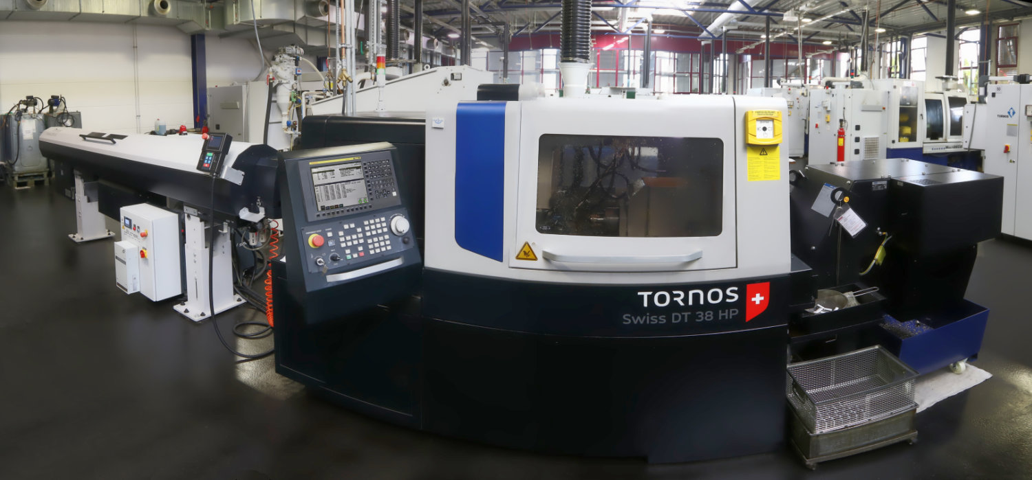 Mit zwei TORNOS SWISS DT 38 HP maximiert die Kugel Präzisions-Drehteile GmbH die bearbeitbaren Durchmesser auf bis zu 38 mm. Die leitstungsstarken CNC-Drehautomaten überzeugen mit einer hohen Flexibilität dank des modularen Bearbeitungsbereiches, der Bohren, Fräsen, Gewindewirbeln und Abwälzfräsen ermöglicht.